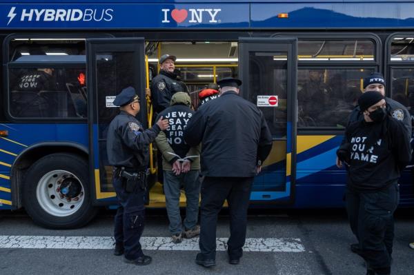 该组织在Instagram上发帖称,被捕的抗议者中包括犹太和平之声组织的成员。视频显示,不守规矩的人群高呼:“解放,解放巴勒斯坦!”街上可以看到多名纽约警察。