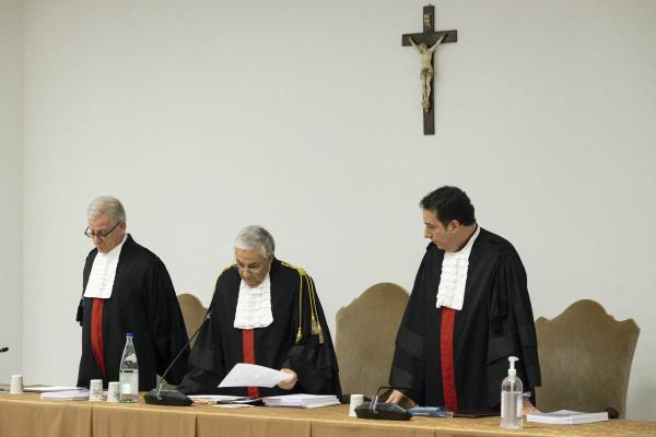 审判在梵蒂冈博物馆的专用房间举行了80多场听证会,墙上挂着教皇弗朗西斯微笑的肖像。