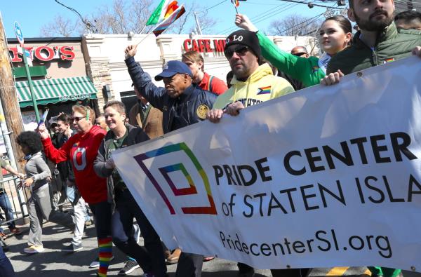 “这就是为什么我们很高兴能与史坦顿岛商业拓展中心合作,举办今年有史以来第一次圣帕特里克节游行,欢迎所有感兴趣的人——无论他们的性取向、性别认同、种族或信仰——一起游行。”