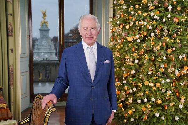 这是查尔斯在位的第二次圣诞广播,是在白金汉宫的中央房间里站着播出的,从中央房间可以看到俯瞰林荫大道的著名阳台。背景中可以看到维多利亚女王纪念堂。