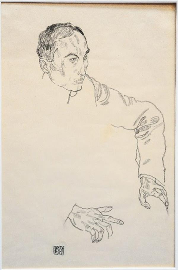 周五,弗里茨·格伦鲍姆64岁的亲戚蒂莫西·赖夫和他20岁的儿子保罗一起,由曼哈顿地区检察官阿尔文·布拉格和联邦国土安全调查局向他们赠送了埃贡·席勒的另外两幅作品——《黑发女孩》和《男人的肖像》。