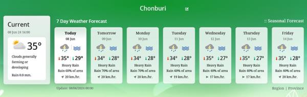 春武里7日天气预报。