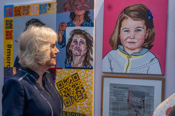 卡米拉女王从她女儿那里得到有关才艺表演的消息后,参观了一个艺术家团体。
