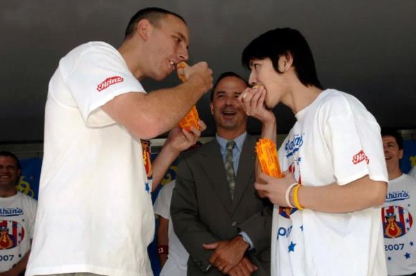 40岁的栗宝和46岁的小林加起来共获得了22次吃热狗冠军,他们激烈的战斗成为了美国职业棒球大联盟的传奇。
