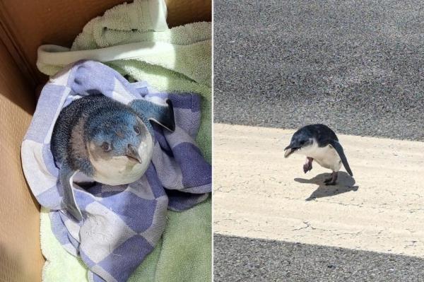 在它被捕获后,照片显示这只看起来很失望的企鹅裹在毛巾里,躺在一辆车里。