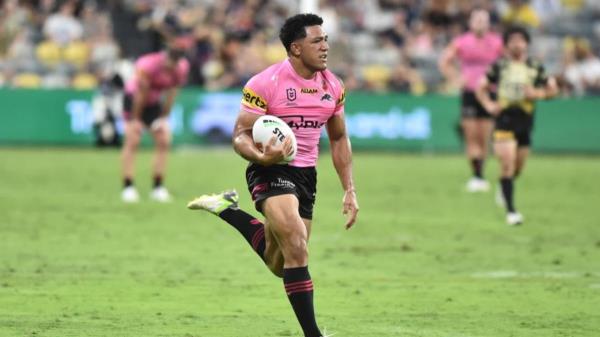 黑豹队的边锋布莱恩·托奥,在他的第100场NRL比赛中,在他的17次抢断中,一次尝试和1.94米的奔跑中,他的身材非常高大。