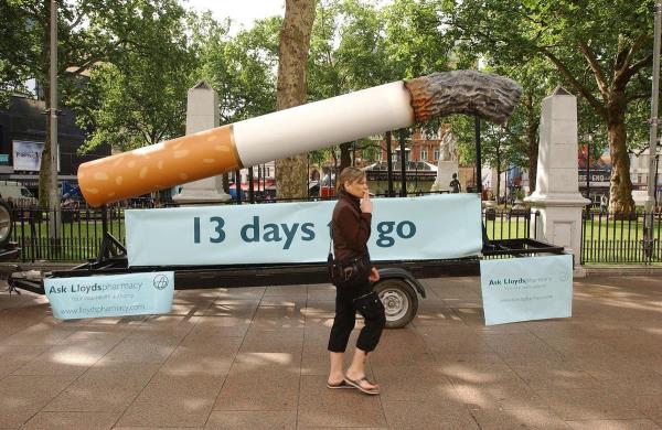 2007年7月,在英国的任何酒吧、餐馆、夜总会以及大多数工作场所和工作车辆上吸烟都是违法的。