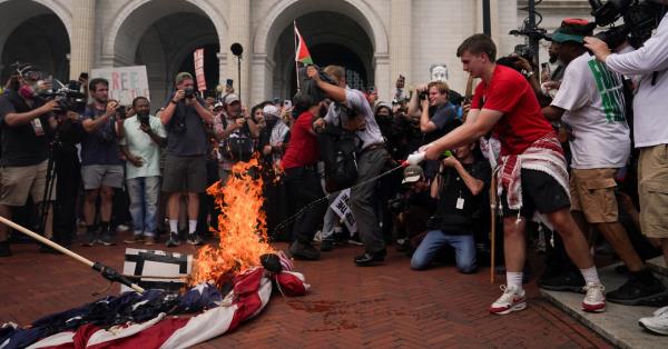 路透华盛顿7月25日电- - -美国副总统哈里斯(Kamala Harris)与民主党和共和党领袖一道,在华盛顿举行会议谴责在华盛顿联合大楼外焚烧美国国旗并喷涂亲哈马斯涂鸦的抗议者周三,他称这些行为是不爱国和令人憎恶的。抗议活动发生的同时,奥巴马总统向奥巴马发表了讲话以色列总理本雅明·内塔尼亚胡在国会发表讲话。在他发表讲话之前,抗议者在美国国会大厦附近游行谴责美国在以色列与加沙地带的哈马斯激进分子作战期间向以色列提供军事援助。在内塔尼亚胡的演讲之后,一些示威者示威者聚集在工会门前n站。他们在ico外悬挂了美国国旗尼克火车站,烧毁了美国航空公司在一座巨大的纪念碑上,人们用喷漆写上了“哈马斯来了”和“解放加沙”的字样。民主党总统候选人哈里斯周四在一份声明中表示,她将退出竞选谴责任何与哈马斯有联系的个人。“我公司谴责焚烧美国国旗的行为这面旗帜象征着我们作为一个国家的最高理想,代表着美国的承诺。它永远不应该被这样亵渎。”哈里斯说。哈里斯和拜登将于周四晚些时候分别与内塔尼亚胡举行会谈。白宫外计划举行更多抗议活动。在周三的抗议活动中,在一些抗议者离开之前聚集在尤尼欧附近在车站,警察对数千名示威者中的一些人使用了胡椒喷雾警察在场并逮捕了一些人。在联合大学外焚烧国旗和涂鸦美国众议院议长、共和党人约翰逊(Mike Johnson)和众议院民主党领袖杰弗里斯(Hakeem Jeffries)对车站计划提出了强烈批评。