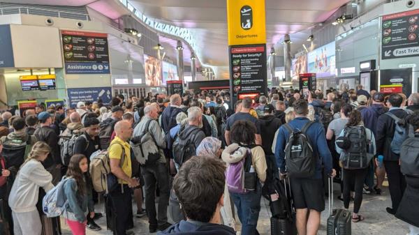 社交媒体上分享的图片显示,在向伦敦警察厅报告有“可疑物品需要检查”后,机场内聚集了大量人群。