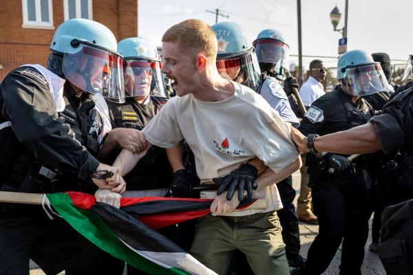 民主党全国代表大会开幕当天,芝加哥的抗议者与警察发生冲突,数千人走上街头,要求结束加沙战争。