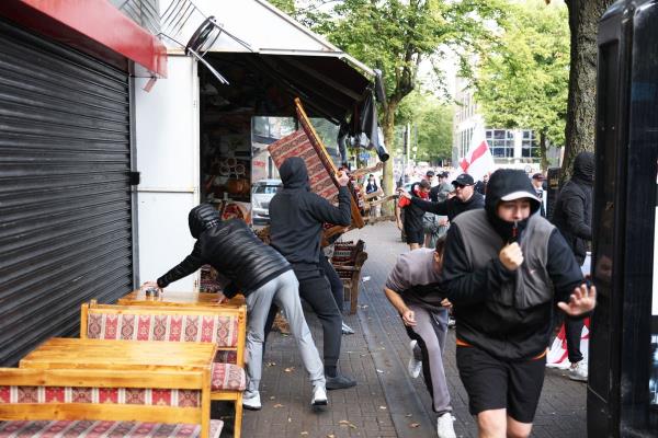 周六晚上的暴力事件发生在当天早些时候的骚乱之后,当时反移民抗议活动在该市蔓延,商家遭到袭击。