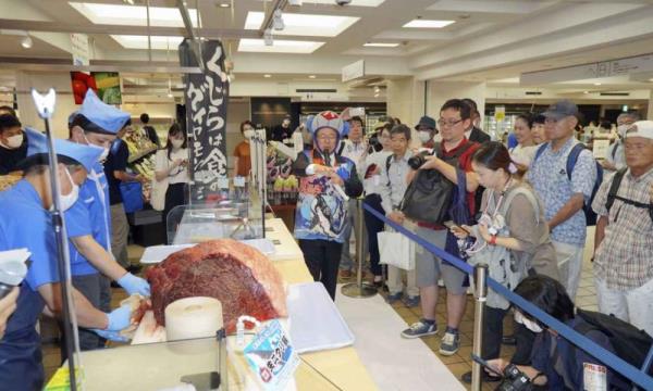 8月30日,在运送鲸鱼肉时,共同社社长东野秀树(Hideki Tokoro)也在场。他还表示,希望向国际观众展示高品质的鲸鱼肉。9月1日,在东京银座区的松谷银座百货商店(Matsuya Ginza)的另一家店,出售了新收购的生肉。它现场演示如何制作肉吸引了一大群热切的观众。