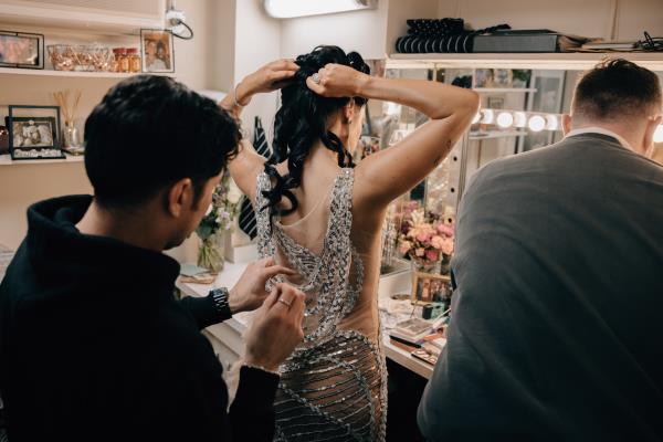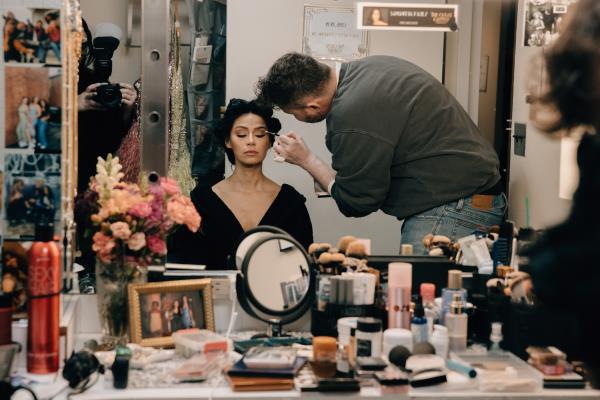 但这位前女王并没有放过这个绿灯。保利来了,一副百老汇明星的样子。她在百老汇剧院的化妆间里准备好了,让“戏比尔”跟着她。下面是独家的幕后特写(包括她是如何被缝进裙子里的),还有保利的评论。