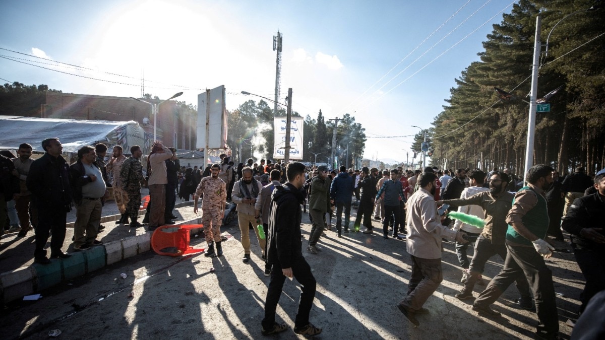 爆炸发生在克尔曼的萨赫布·扎曼清真寺附近,这是索莱马尼的南部家乡,他被埋葬在那里,支持者聚集在巴格达机场外的美国无人机袭击中纪念他死亡四周年。据官方媒体报道,至少170人在爆炸中受伤。