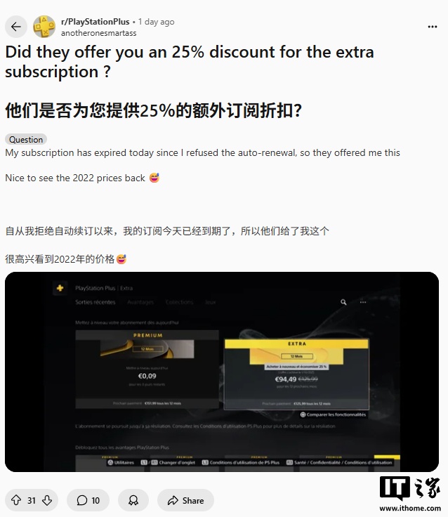 索尼此举显然是为了吸引更多用户选择Premium档会员服务。有用户反馈,如果选择拒绝自动续订,索尼还会提供25%的额外折扣优惠。这个折扣力度相当于2022年的会员价格水平,对玩家来说确实很有吸引力。