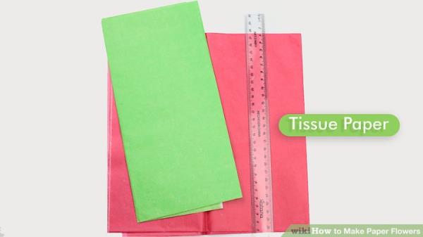 只有一种颜色,但如果你想冒险,可以把几种颜色混在一起。每朵花,你需要3到4张薄纸。当你选择好纸巾后,把它们放在一起,排成一堆。
