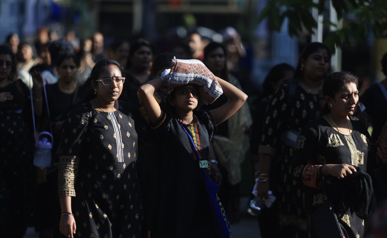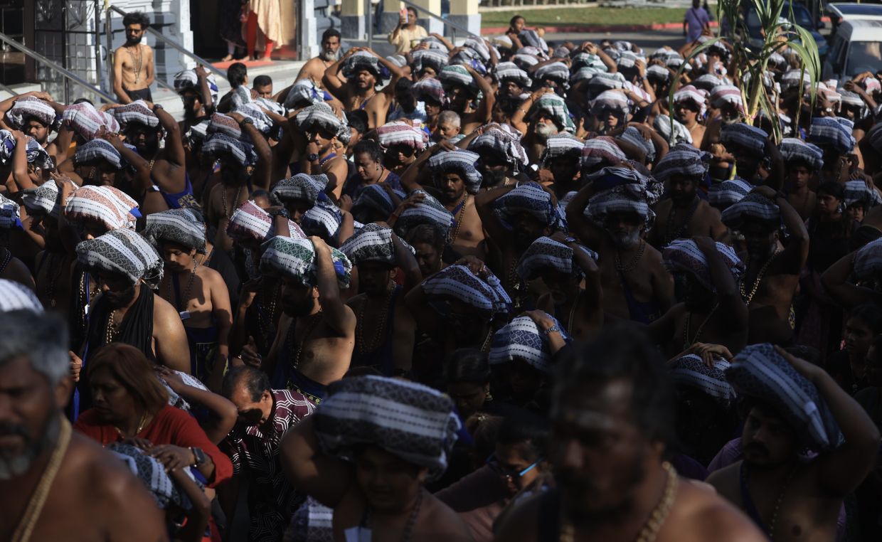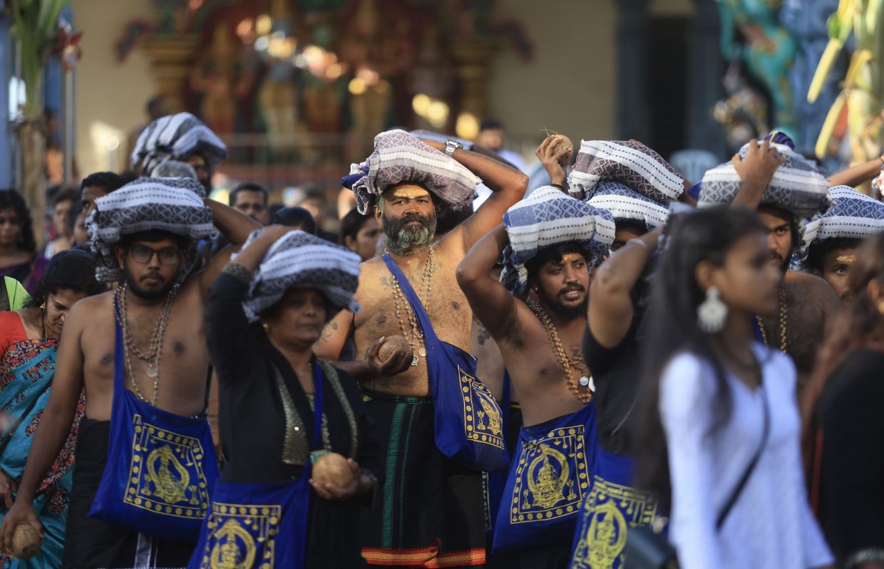 一个三口之家——50岁的丈夫T. Eswaran, 47岁的妻子S. Jeyanthi和18岁的女儿Sharenya——被看到在寺庙里祈祷,继续着他们每年在Ponggal期间祈祷的传统。