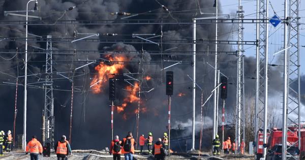 布拉格——(美联社)——周五,捷克东部一列货运列车脱轨,受损罐车中的致癌物苯起火,消防员正在与一场重大化学火灾作斗争。