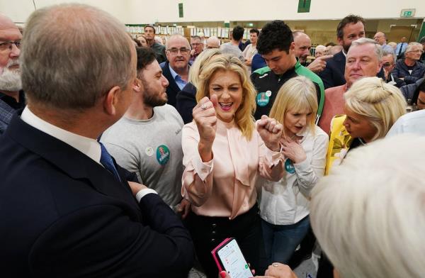 新芬党的林恩·博伊兰当选为都柏林选区的欧洲议会议员。摄影:Gareth Chaney/PA Wire