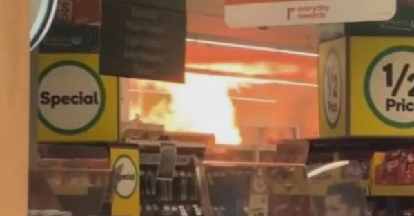 当阿德莱德山斯特林镇伍尔沃斯超市的走道上爆发火球时,购物者和工作人员被迫逃离。