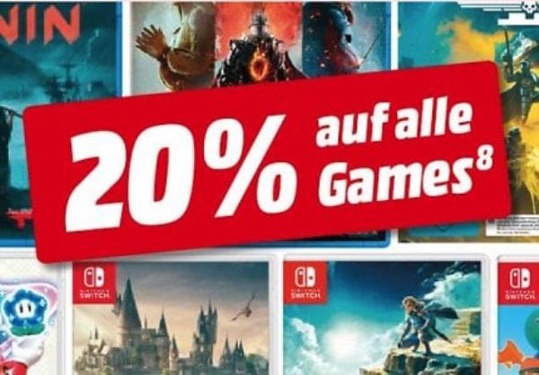 在Media Markt,你可以在Switch, PS5, Xbox, PC & Co平台上获得20%的额外折扣。