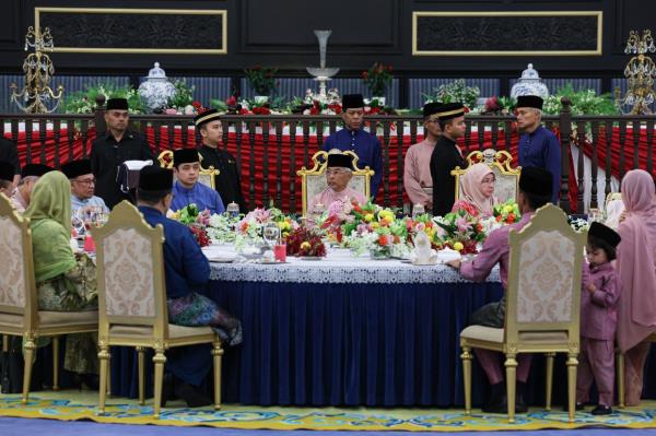 吉隆坡:周六(3月25日)晚上,国家元首阿卜杜拉·里亚图丁·穆斯塔法·比拉·沙阿和国家元首阿贡·东姑·阿兹扎·阿米娜·麦慕娜·依斯干达里亚在国家大厦与内阁部长和外国代表共进早餐。