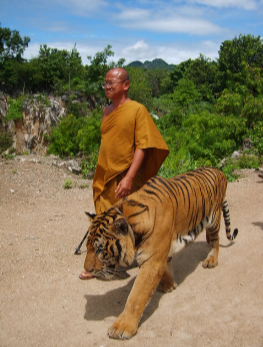 虎庙,又名Wat Luang Ta Bua Yanasampanno,是位于泰国西部北碧府西育区的一座小乘佛教寺庙。它始建于1994年,是一座森林寺庙和野生动物保护区,其中包括老虎,主要是印度支那虎。作为一个“商业”寺庙,老虎寺收取入场费。