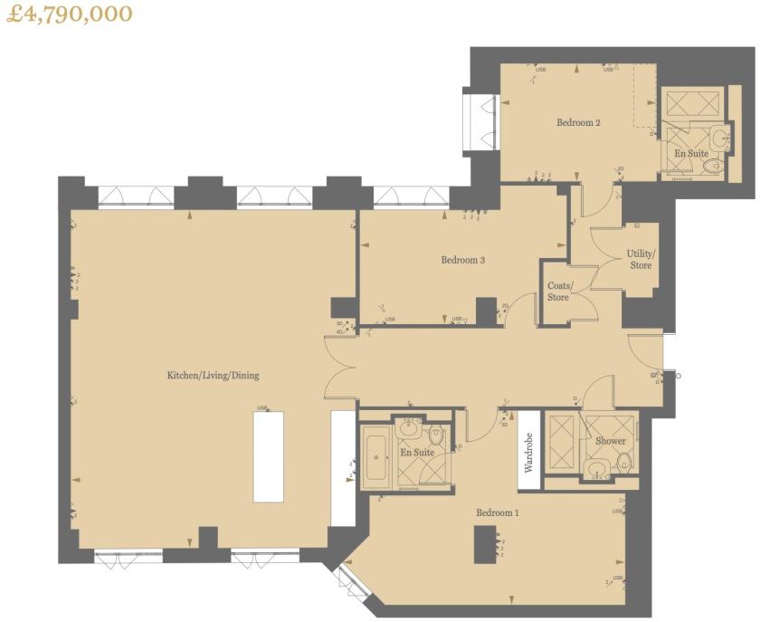 Size:套内171平方米 1843sq.ft 售价:£4,790,000