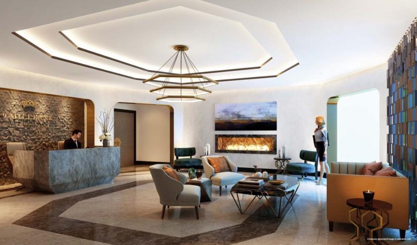 整整20英尺(约6米)高的大门,每扇都由6个部分组成,为住户营造了一处精美雅致的内庭花园作为入户通道,以此致敬乔治王时期时兴的花园广场。住户在进出住宅时还会穿过一座模仿上世纪30年代豪华酒店的Art Deco大堂,满怀对黄金年代的追崇。