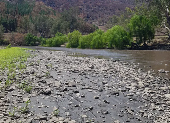 火山灰和沉淀物覆盖了墨累河中的卵石。保罗?杰?麦克伦尼/作者提供