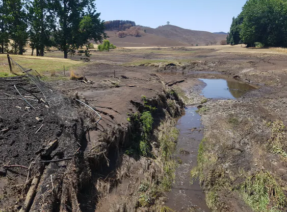 在火灾后的风暴活动后,京吉尔里克附近的马溪的污泥。保罗?杰?麦克伦尼/作者提供