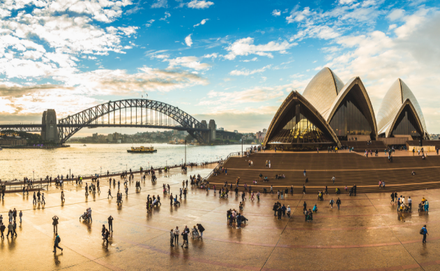 澳大利亚悉尼的旅游业是该市经济的重要组成部分。在截至2019年6月的一年里,这座城市接待了1200万名国内游客和410万名国际游客,但预计2020年游客数量将会下降。最著名的景点包括悉尼歌剧院和悉尼海港大桥。其他景点包括悉尼狂欢节、皇家植物园、月亮公园、海滩和悉尼塔。