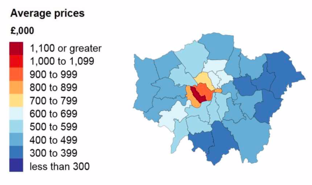 可以看出,北伦敦和靠近泰晤士河西南伦敦部分仍旧是价格相对中低的区域。