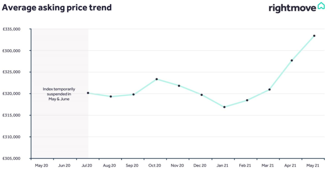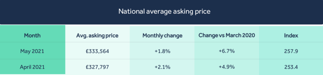 延续四月份的增长趋势,英国平均房价在5月达到历史新高。英国权威房产门户网站Rightmove最新发布的房产指数显示,5月英国房产挂牌价格环比增长1.8%,达到333,564英镑,创下新的全国纪录。