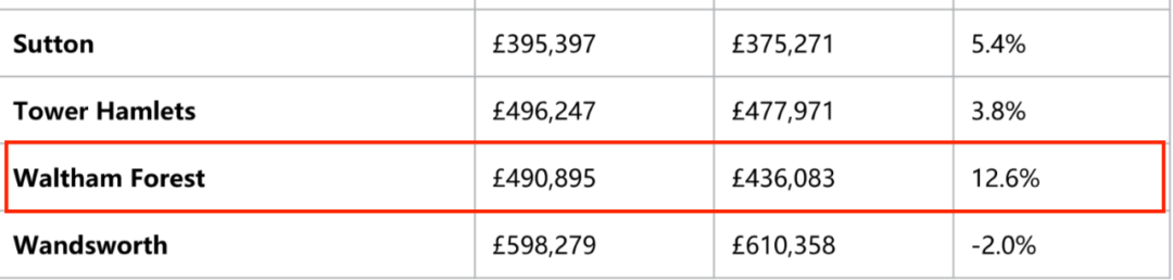 根据英国政府最新发布的英国房价指数,截至2021年3月伦敦地区整体房价的增长达到3.7%。大部分区域涨幅在2%至7%之间,增长最快的是Waltham Forest(12.6%)、 Haringey(11.9%)以及Hammersith and Fulham(11.7%)。