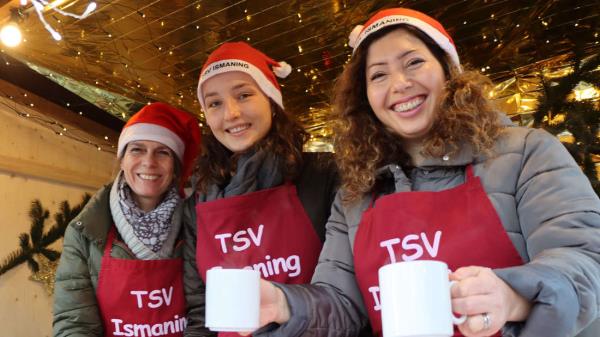 她们用热红酒和微笑温暖人心:来自TSV的女士们(左起)Alex Krapf, Madeline Capko和Sirun Kapitz。?Dieter Michalek