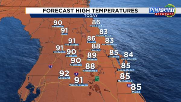 佛罗里达州奥兰多。-周末快乐!预计奥兰多将有充足的阳光,下午最高气温将略低于平均气温80华氏度以上。