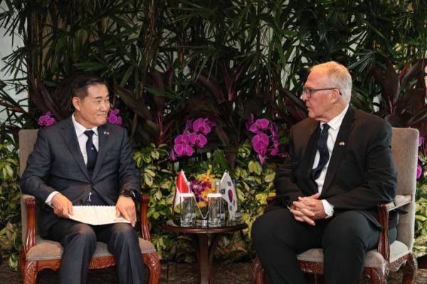 国防部说,国防部部长申元植星期五在新加坡举行的年度安全论坛上分别会见了加拿大国防部长和美国参议院代表团,讨论了国防和武器合作问题。