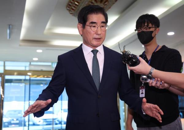 16日,国防部长官候选人金容铉在首尔钟路区世宗路国防部大院接受记者采访。韩国联合通讯社