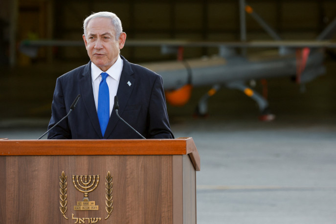 以色列总理内塔尼亚胡在帕尔马希姆空军基地发表声明2023年7月5日,以色列里松莱锡安市附近。路透/阿米尔·科恩
