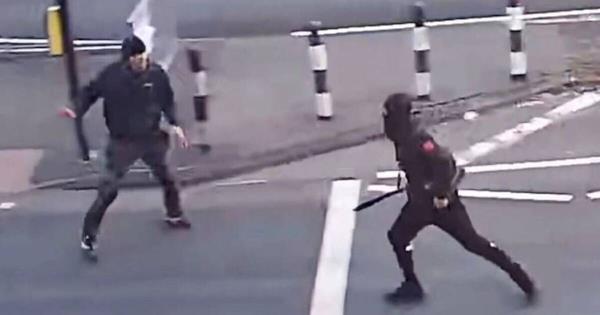 令人震惊的视频显示,蒙面暴徒用巨大的刀片在街对面追赶沃德先生。