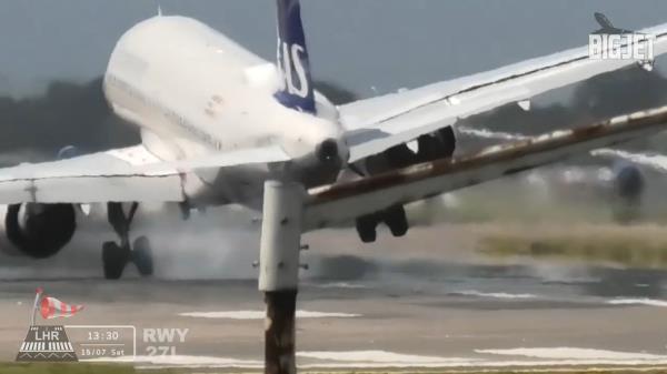 一架飞机在大风中降落在希思罗机场时,镜头捕捉到了令人反胃的时刻(视频来自Youtube / Big Jet TV)