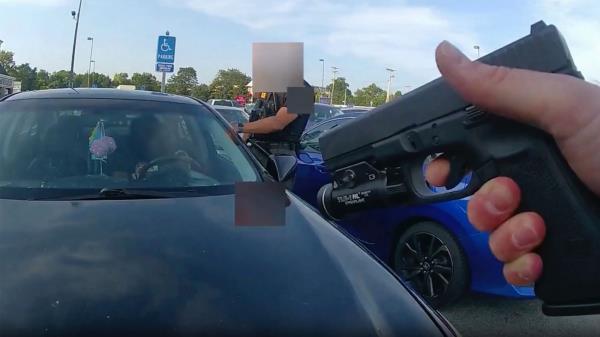 “你要开枪打我吗?”视频中可以听到这位年轻的母亲说,随后警察开了一枪,迅速离开了车行。