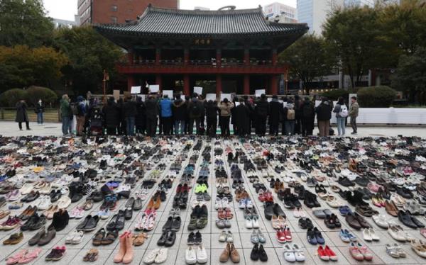 活动人士计划在晚上7点举行哀悼活动,并将鞋子展示到晚上8点(韩联社)