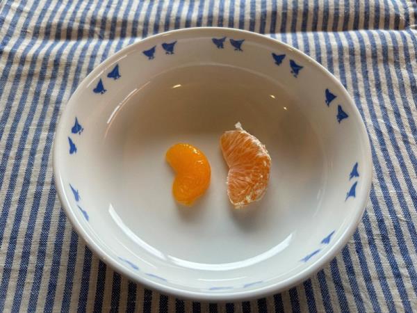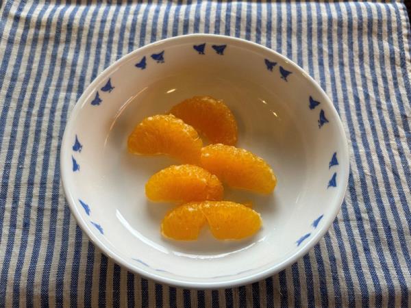 2023年10月29日,东京世田谷区,几节新鲜的“mikan”橘子,内部涂层已经融化。穿过水果部分的白色线必须用手去除。(每日/亮渡边)