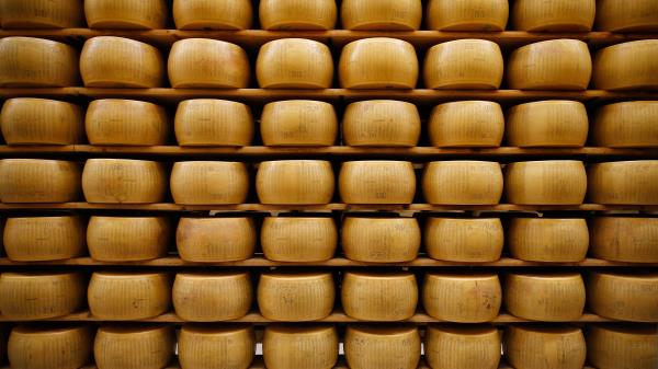 据意大利媒体报道,一个10米高的架子倒塌,导致数千个重达40公斤的奶酪轮倒在地上。