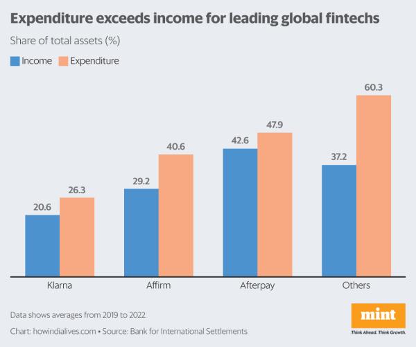 金融科技公司也严重倾向于某些类型的贷款,比如先买后付(BNPL)贷款——本质上是购买时提供的零利率贷款,分期偿还。尽管它们的贷款产品越来越受欢迎,但正如国际清算银行(bis)在全球背景下所阐述的那样,它们的盈利之路仍然崎岖不平。国际清算银行是一家由各国央行所有的金融机构。
