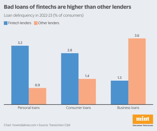 这种技术使金融科技公司在2022-23年的一天内处理了近70%的消费者耐用贷款和57%的个人贷款,远远领先于其他类型的贷款机构。但这是有代价的。在12月28日发布的最新金融稳定报告中,印度央行指出,“一些迹象表明,消费信贷的风险正在积聚”,理由包括评级下调超过评级上调、承销标准下降以及个人多次贷款。