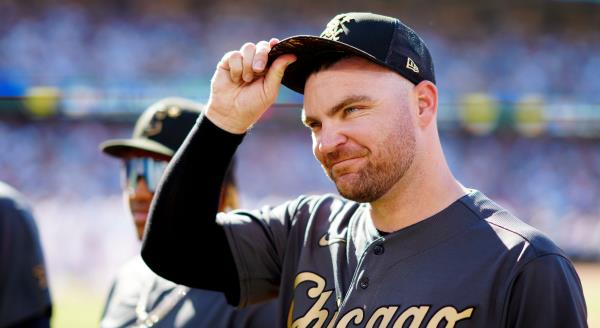 2022年7月19日,在洛杉矶道奇体育场举行的第92届美国职业棒球大联盟全明星赛开始前,芝加哥白袜队的利亚姆·亨德里克斯在球员介绍会上向观众致意。(Daniel Sheary/MLB Photos via Getty Images)