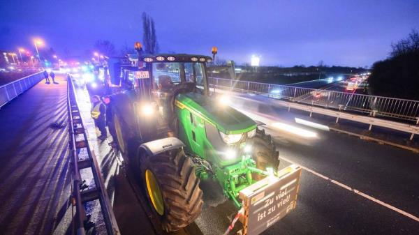 图林根州的农民强调了他们对削减的抗议:他们带着几百辆拖拉机在路上——几乎没有任何高速公路是开放的。